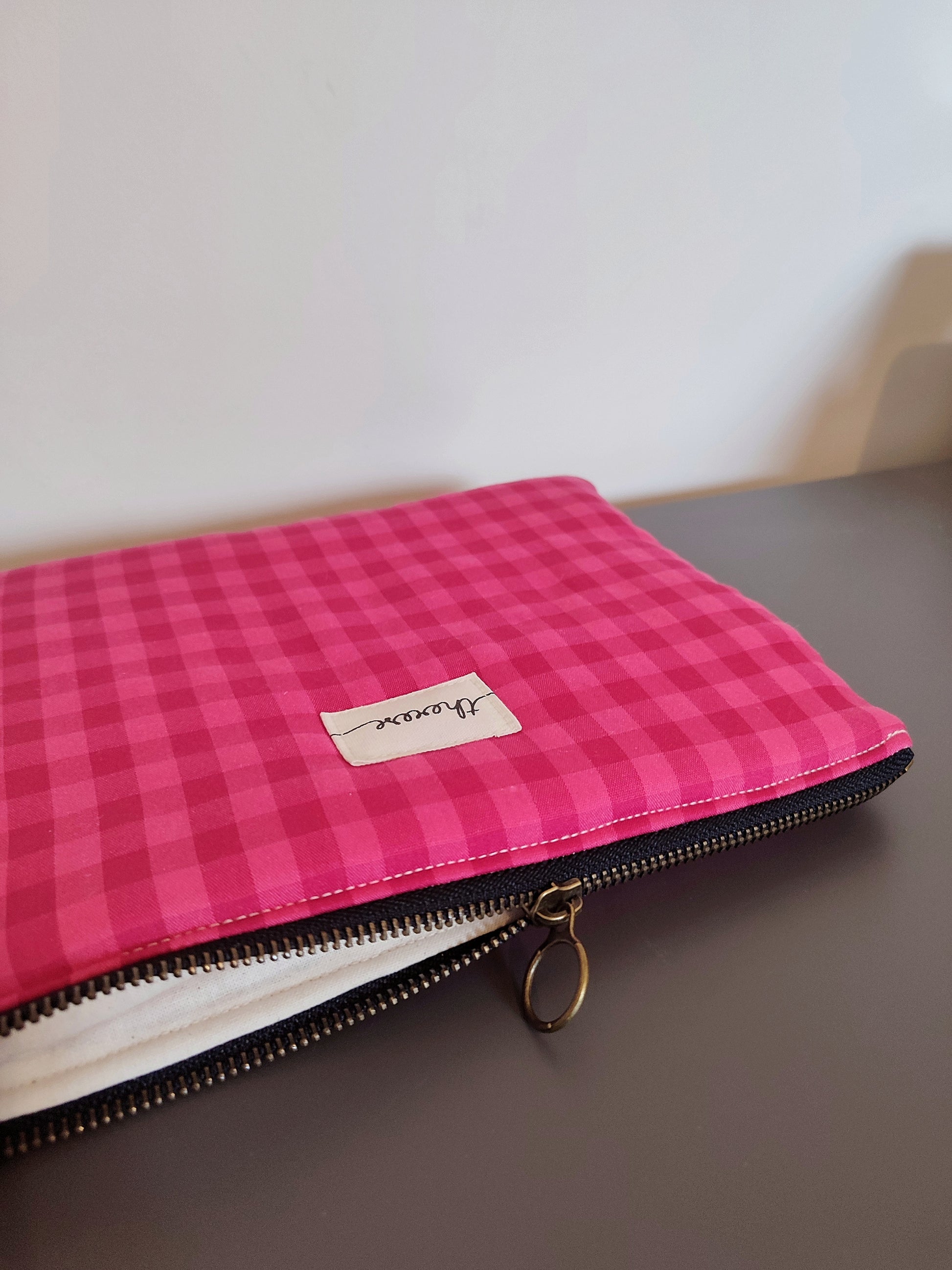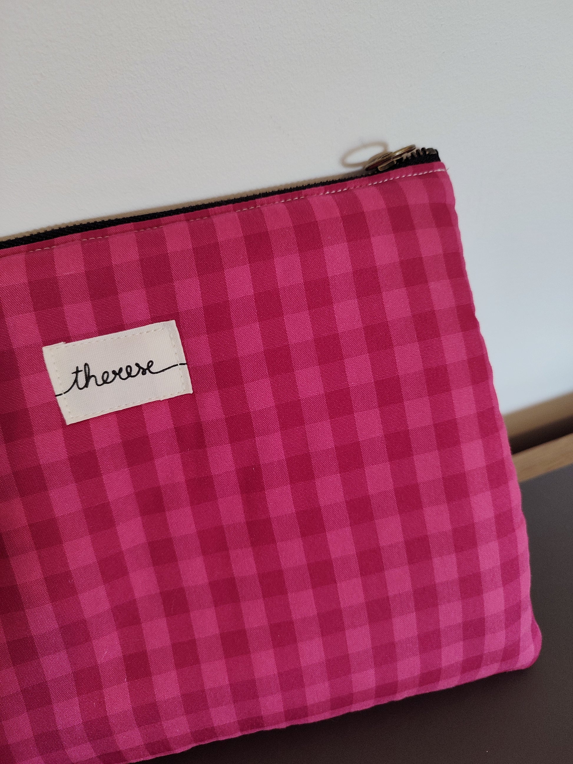 Pochette en tissu vichy rose (polyester)